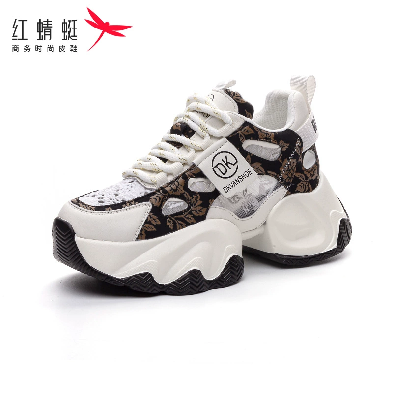 Red Dragonfly mesh breathable dad shoes with increased inner height 2024 spring and summer new versatile Korean version thick-soled fashionable casual shoes