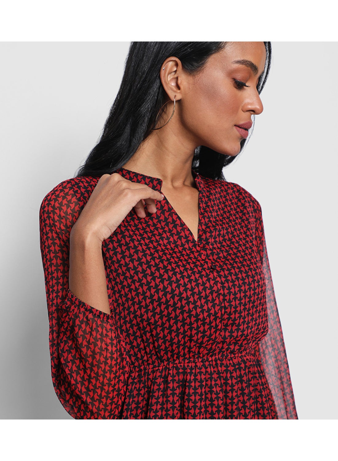 | nameOriginal | Printed Mandarin Neck Dress Red |