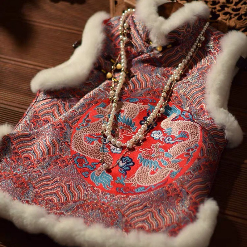 | nameOriginal | Red Embroidered Chinese New Year Cheongsam Vest Vest Modified Tang Suit Sleeveless Jacket Winter Cotton Vintage Chinese Style Women |