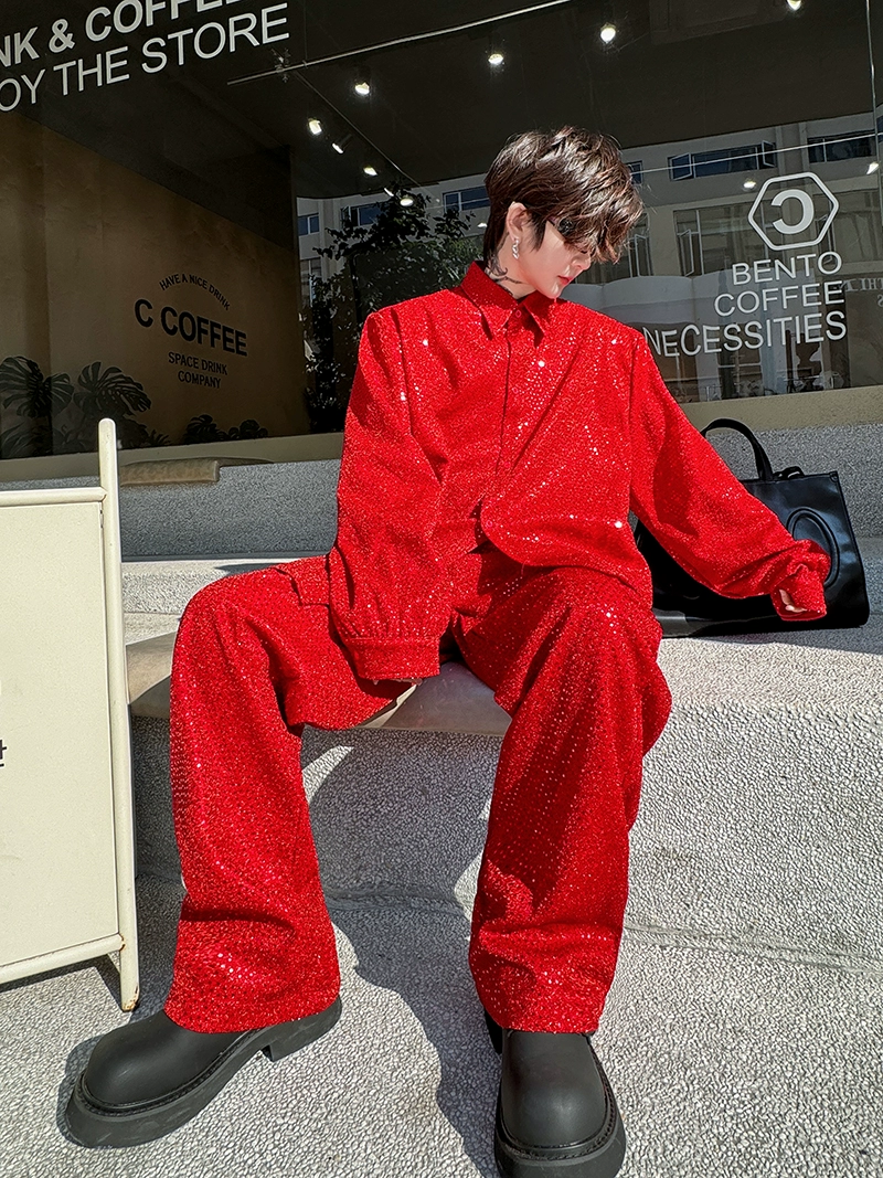 | nameOriginal | Red fashionable niche Korean style performance stage shirt |