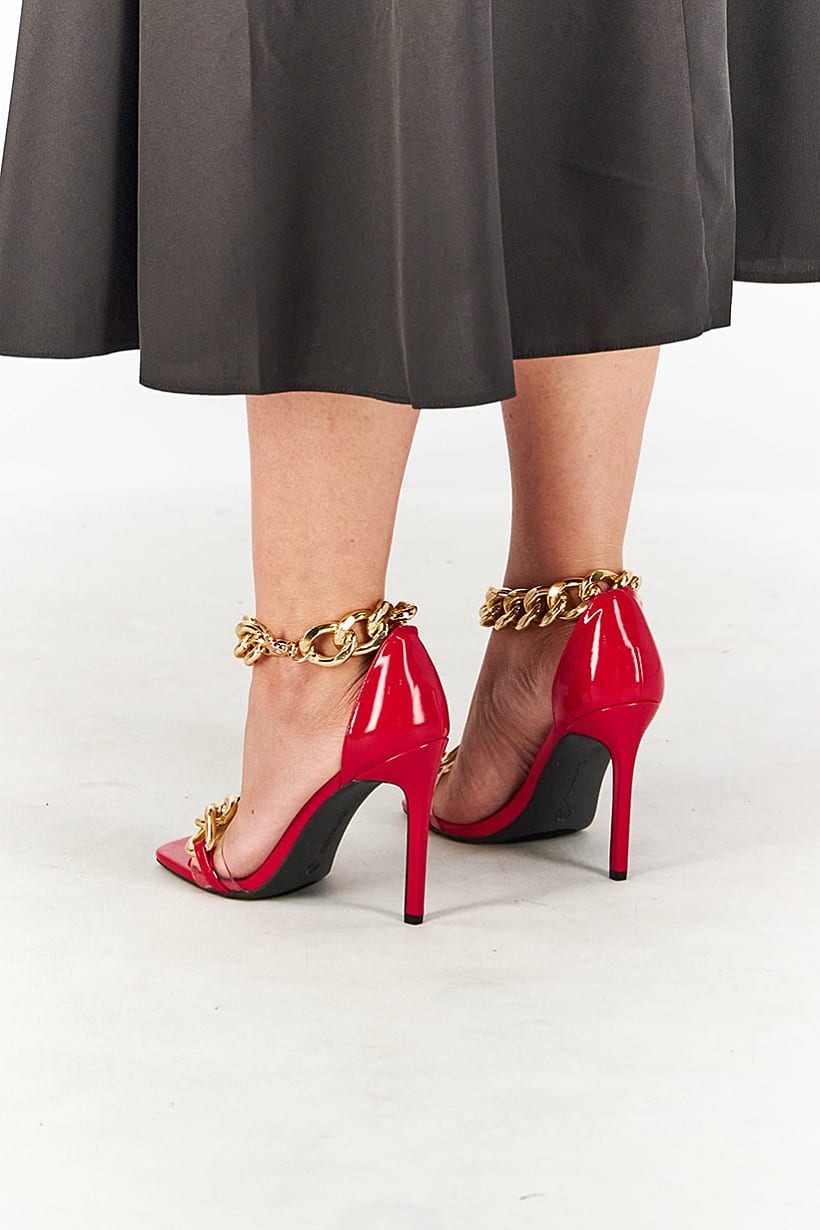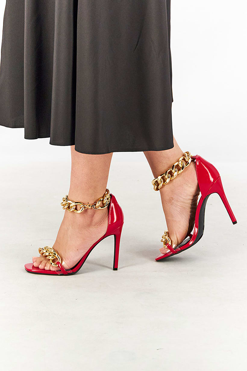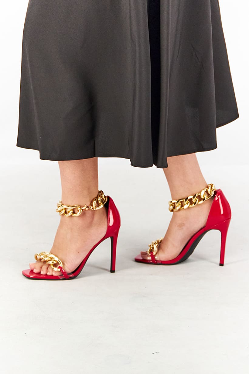 | nameOriginal | Women Meduim Faux Leather Chain Trim Dress Sandals, Red |