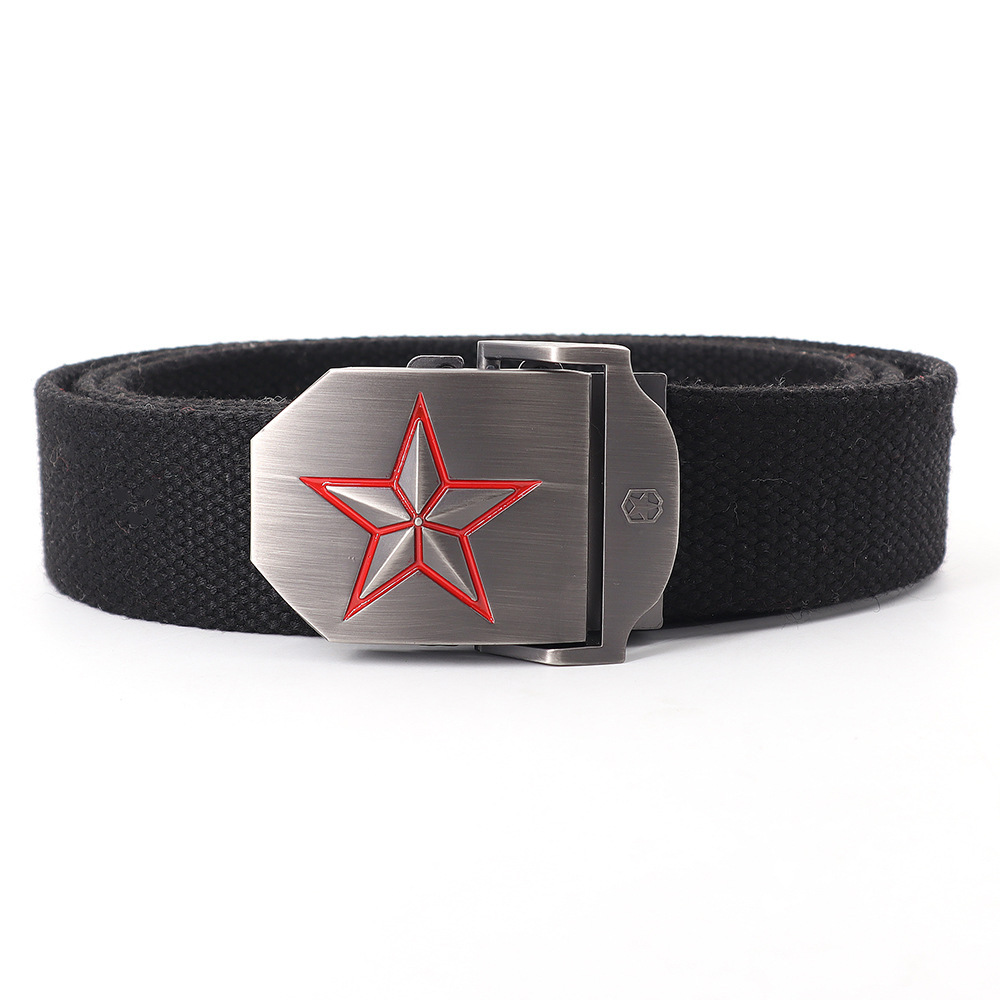 Red Five Star Youth Canvas Belt Trendy Men’s Outdoor Korean Style Thickened Jeans Belt Women’s Casual Cross-border Wholesale