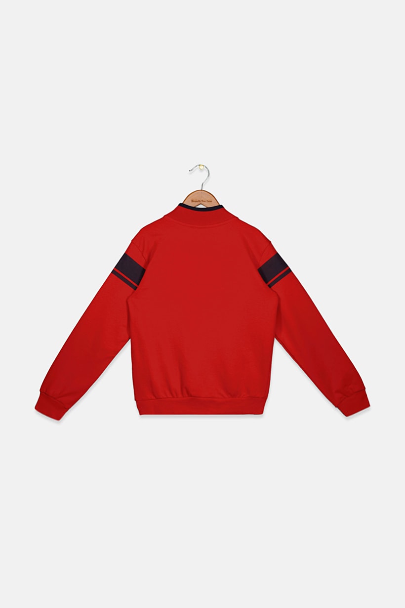 | descriptionOriginal | Care : Machine washable, Ideal For : Boys, Sleeve Length : Long Sleeve, Type of Hem : Straight hem , Type of Neckline & Collar : Mock neckline, Disclaimer : Product color may slightly vary due to photographic lighting sources or your monitor settings., Fabrics : 95% Cotton, 5% Elastane, Occasion : Casual, Pattern & Print : Stripe, Type of Sleeve : Long sleeve , Types of Closures : Zipper closure, Color Family : Red, |