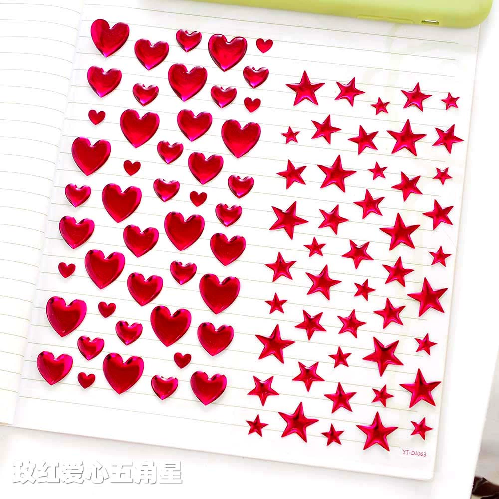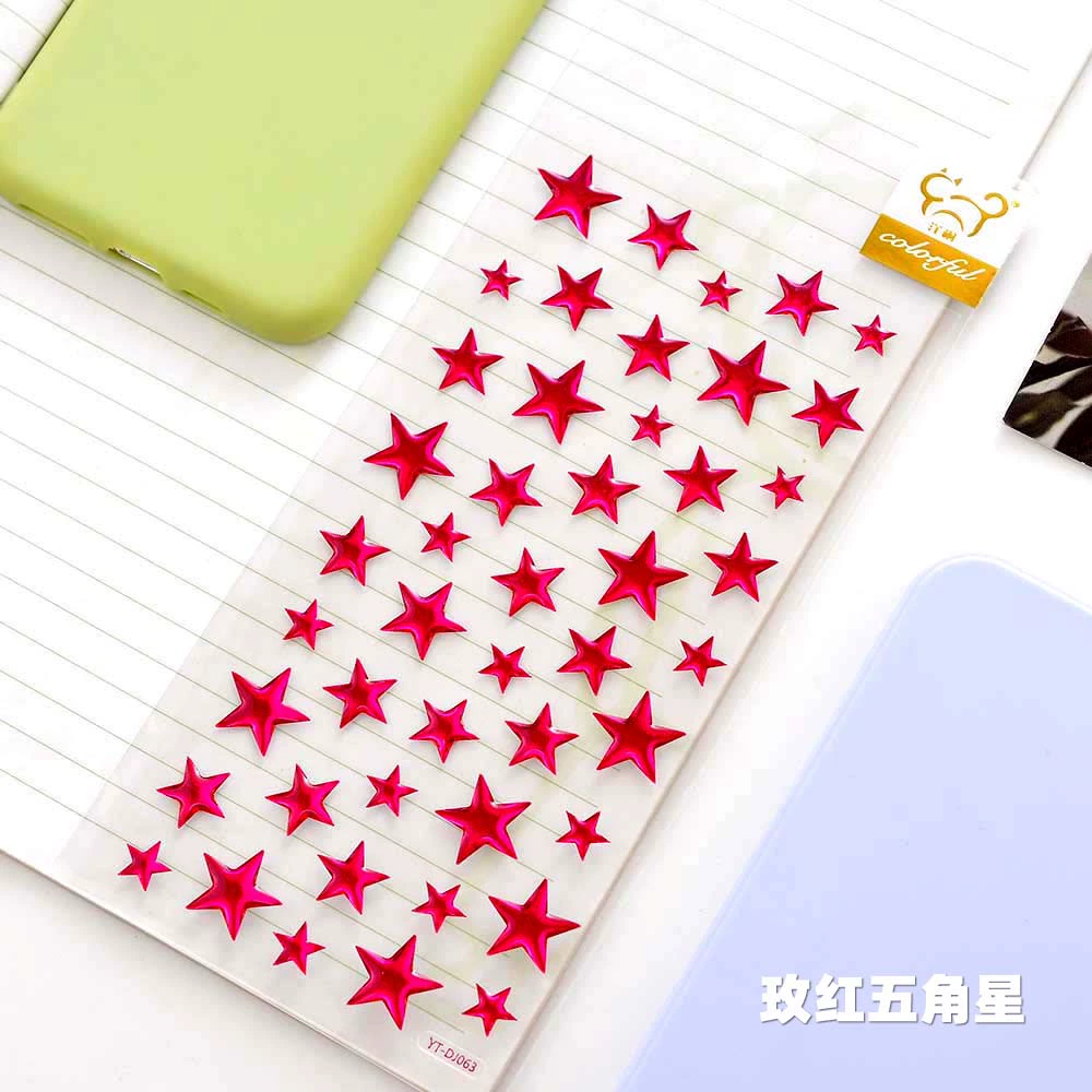 | nameOriginal | Red golden love star five-pointed star three-dimensional crystal glue sticker children's baby handbook decoration sticker |