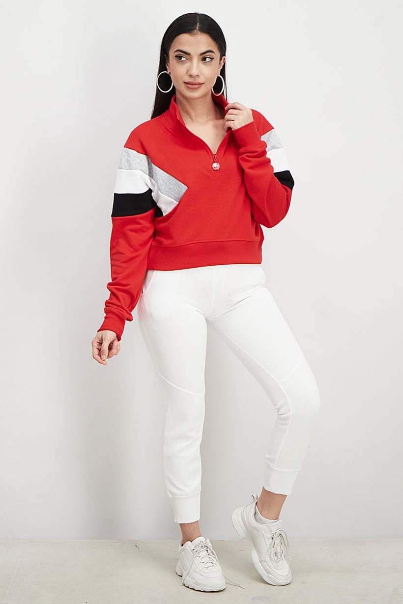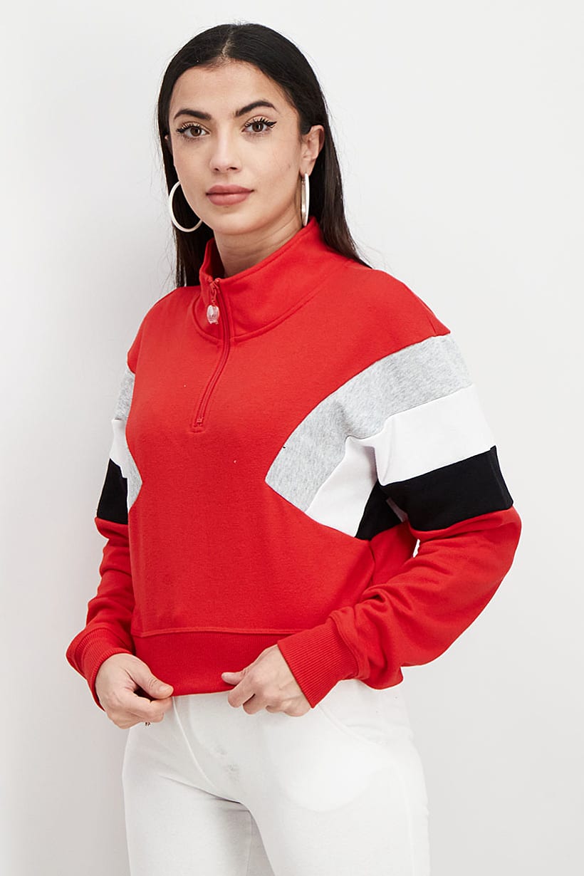 Red Half Zip Sweatshirt for Women’s Sportswear.