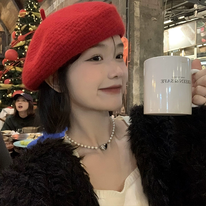 | nameOriginal | Red high-quality woolen beret women's autumn and winter Korean style face-showing little bud painter's hat Christmas hat |