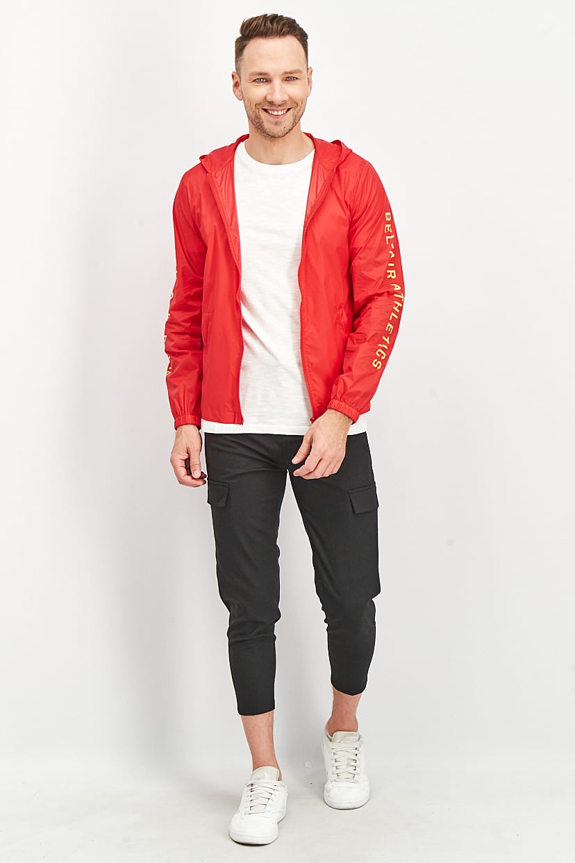 | nameOriginal | Men Sportswear Fit Hooded Long Sleeve Windbreaker Jacket, Red |