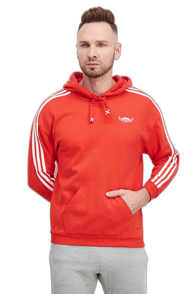 Red Hoodie with 3 Stripes Brand Logo for Men’s Sportswear.