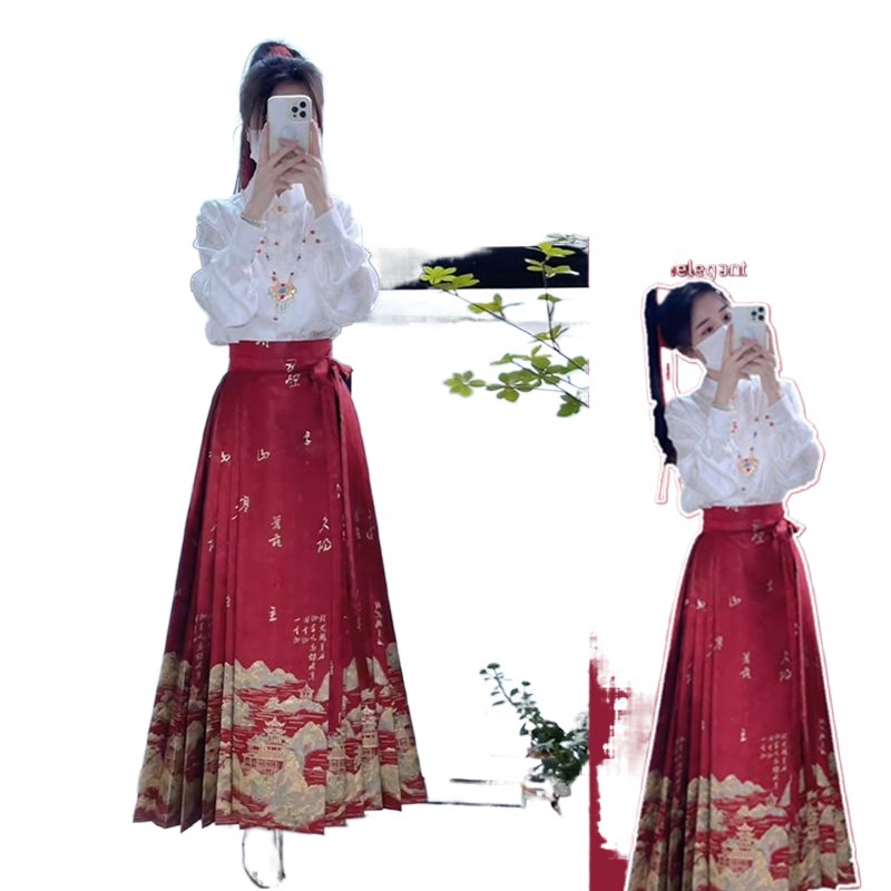 | nameOriginal | Red Horse Face Skirt Women's Top suit 2024 Spring New Chinese Style Small Daily Chinese Style Hanfu dress |