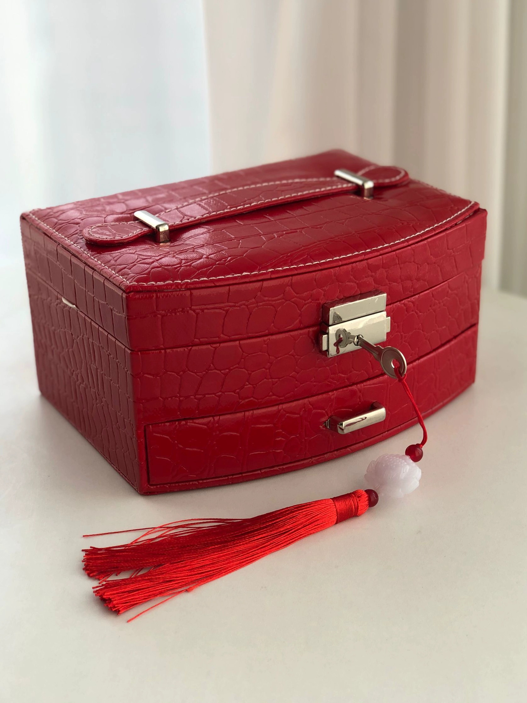 | nameOriginal | Red jewelry box jewelry storage box retro lock bracelet dressing box leather wedding gift bracelet dowry |