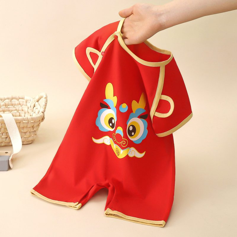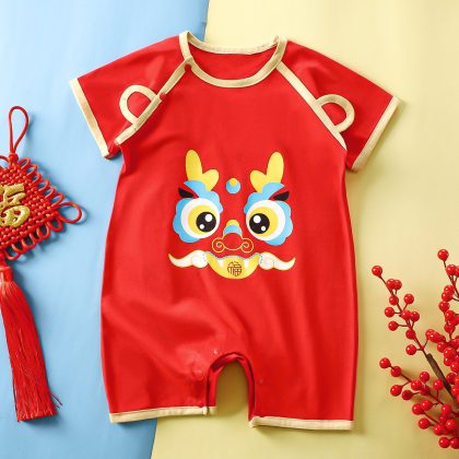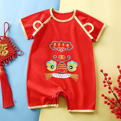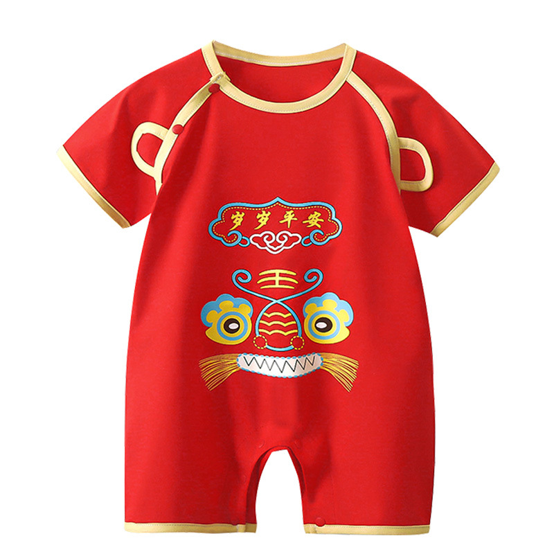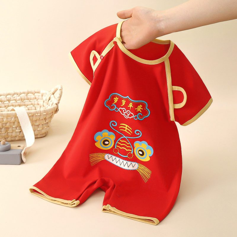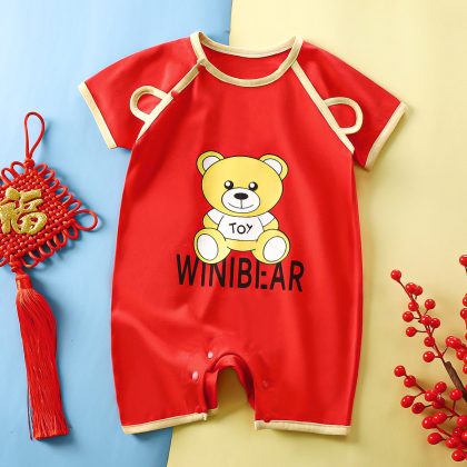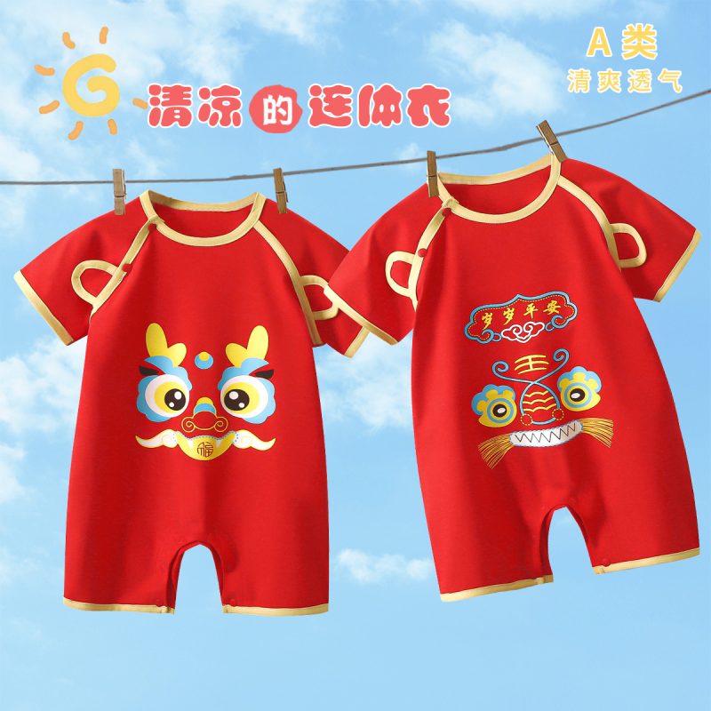 Red jumpsuit baby cotton short-sleeved climbing suit summer full moon clothes for boys and girls
