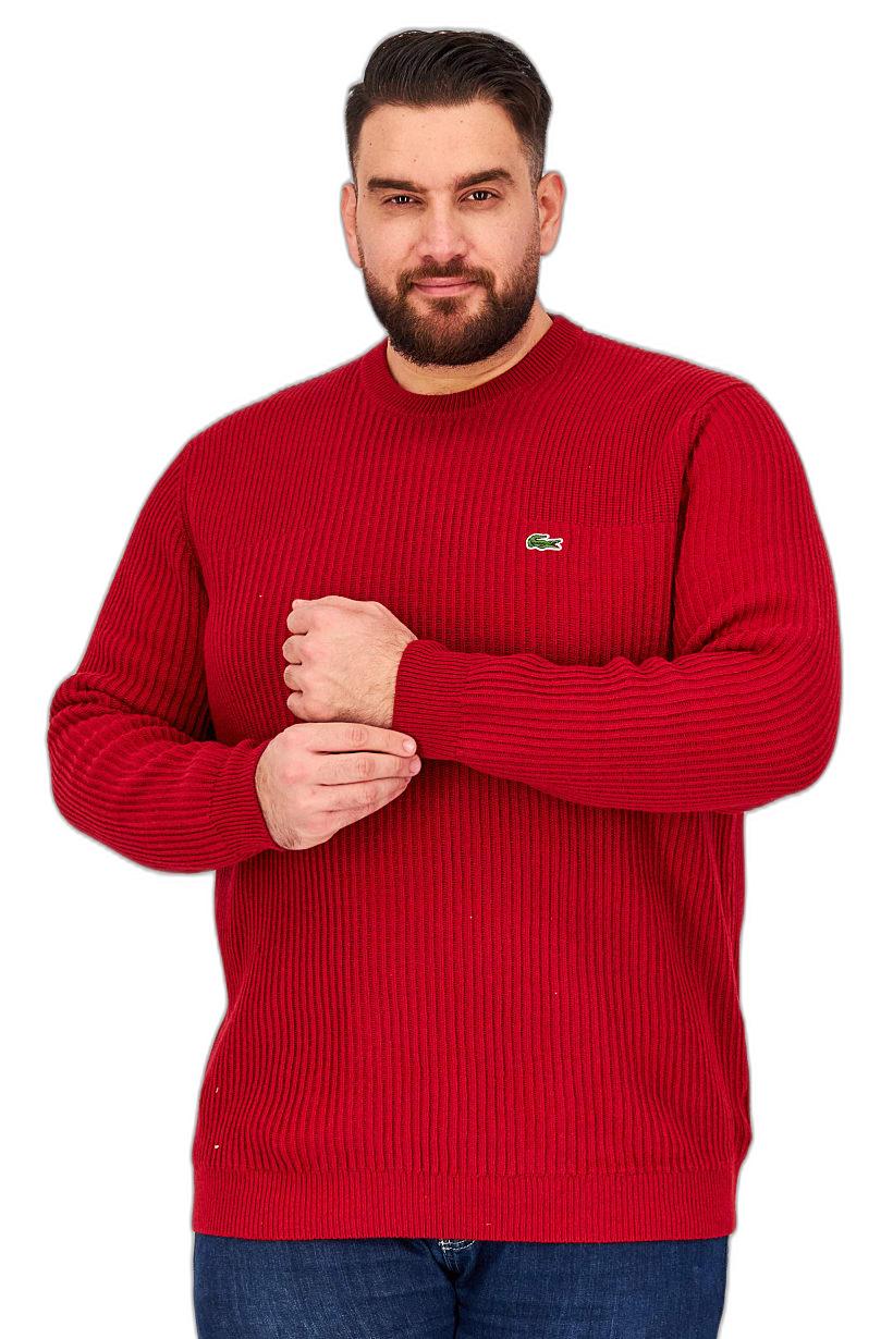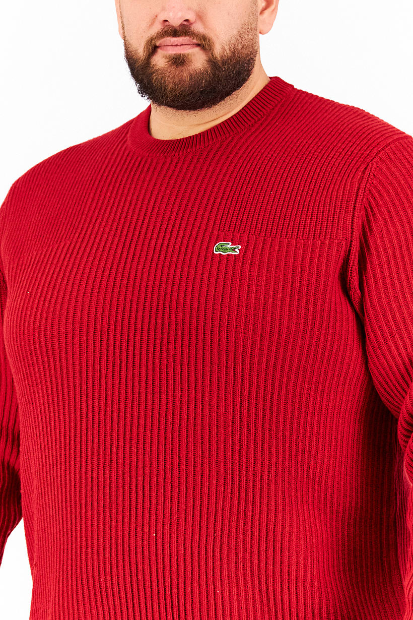 Men Crew Neck Long Sleeve Knitted Sweater, Red