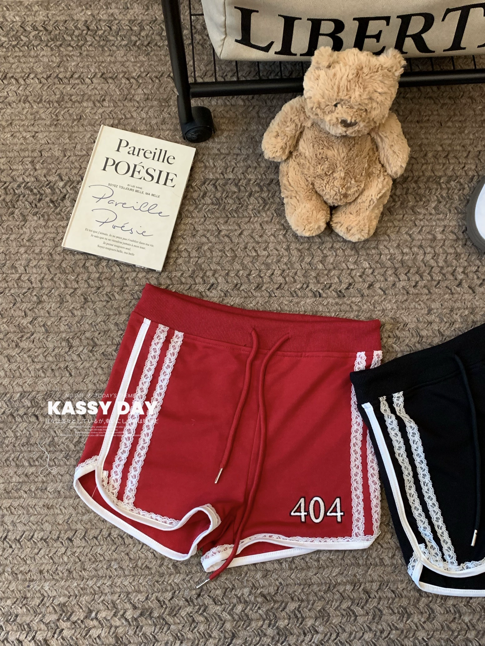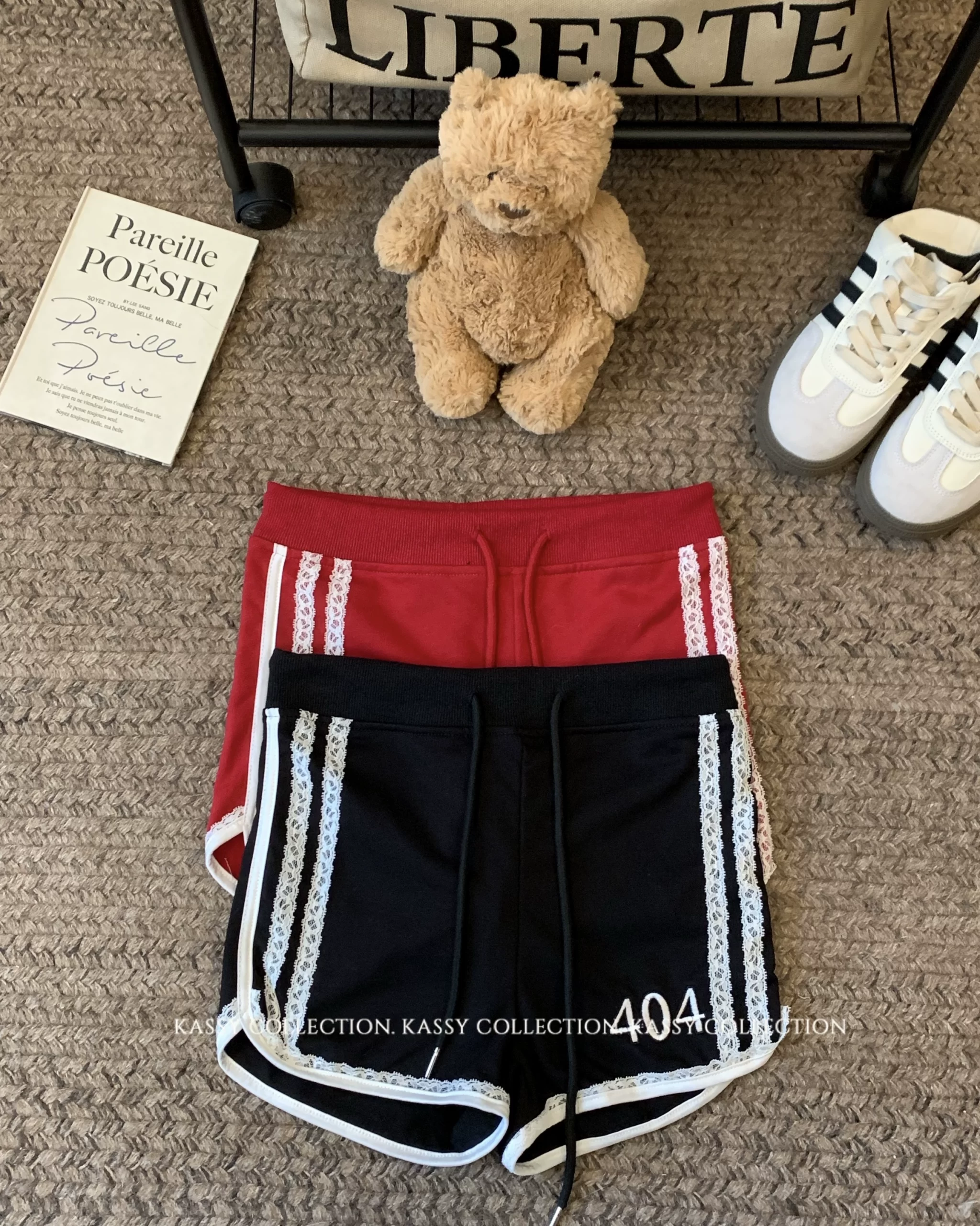 | nameOriginal | Red lace American high-waisted straight shorts with drawstring |