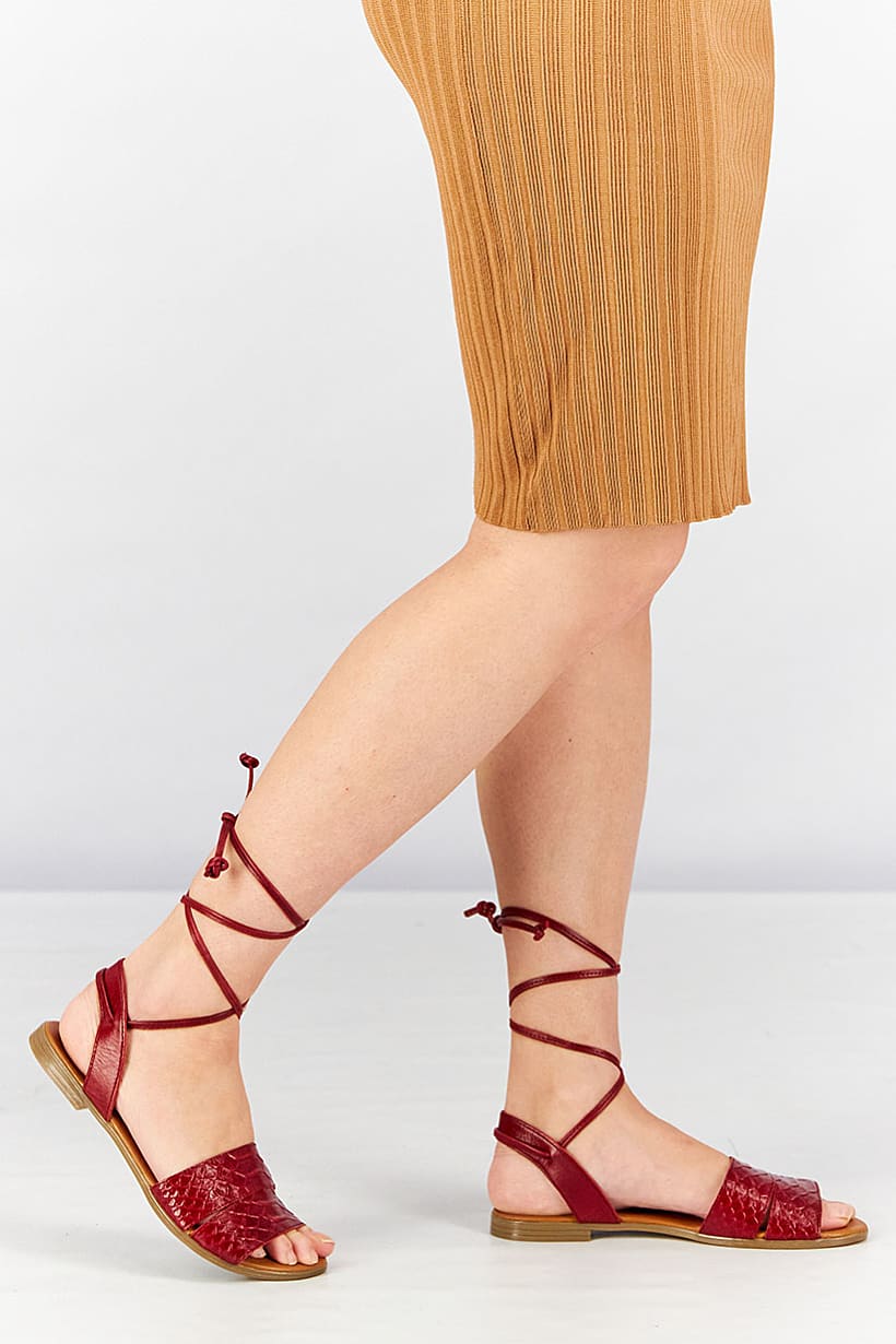 | nameOriginal | Women Tie Closure Lather Flat Sandals, Red |