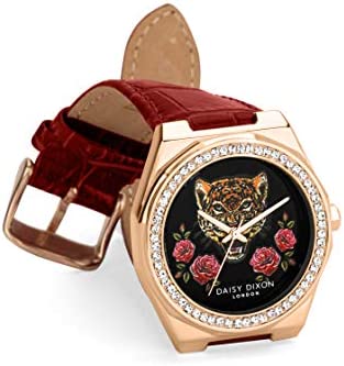 The DAISY DIXON LONDON Women’s Quartz Watch Alessandra #16 Red Leather Strap with Tiger Printed Dial – D DD157RRG is a stunning timepiece that combines style and functionality. The watch features a bold and vibrant red leather strap that adds a pop of color to any outfit. The tiger printed dial is eye-catching and unique, making this watch a statement piece. The quartz movement ensures accurate timekeeping, while the rose gold-tone case and hands add a touch of elegance. This watch is perfect for women who want to make a bold fashion statement while keeping track of time.