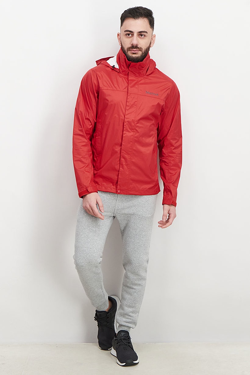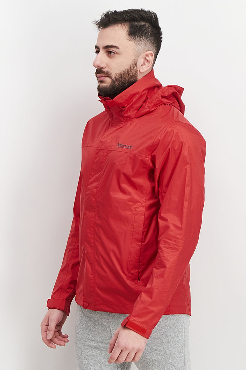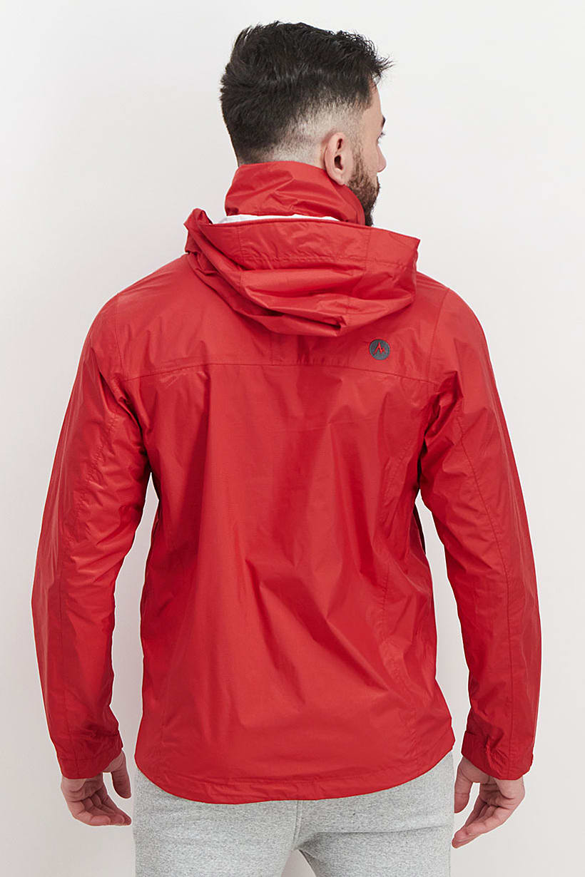 Red Lightweight Rain Jacket for Men with Precip Waterproof and Ripstop features.