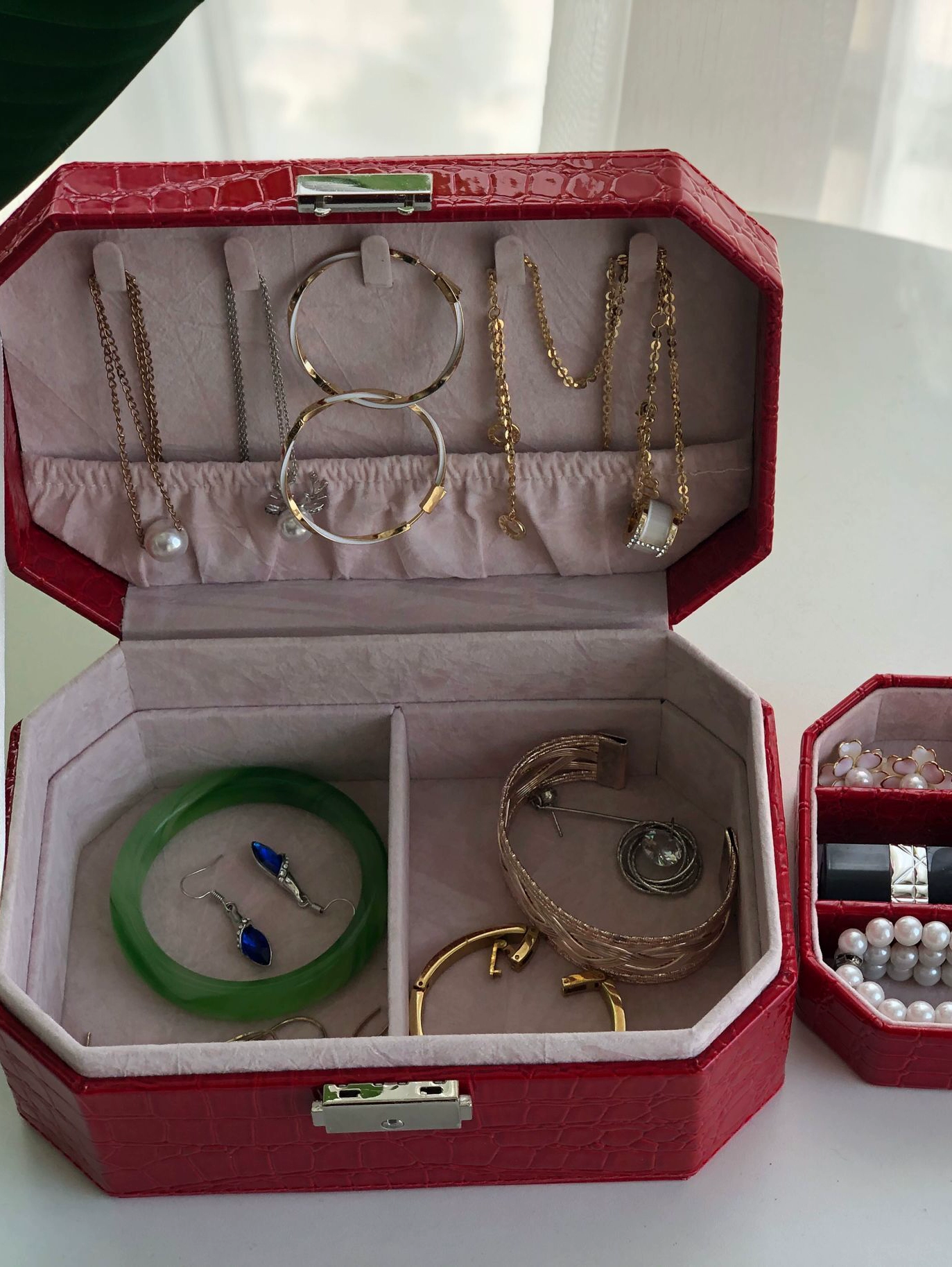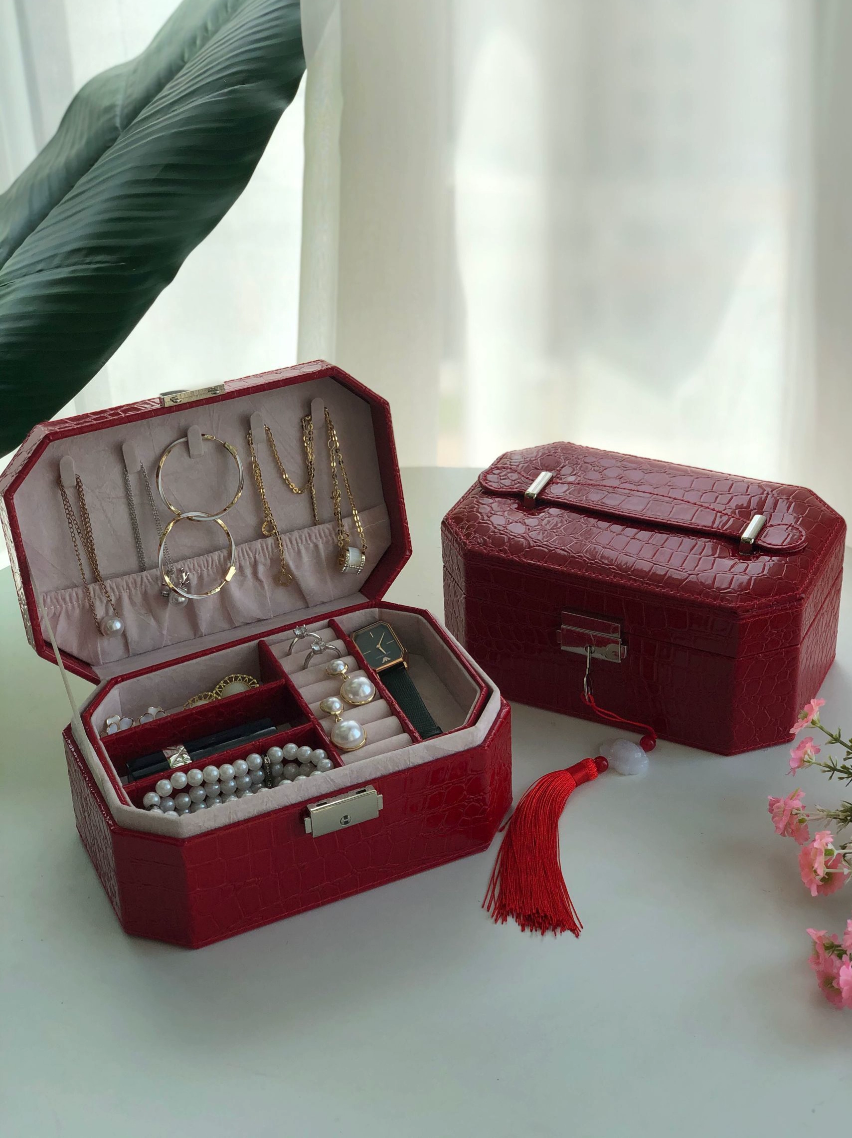 | nameOriginal | Red lock European style earrings jewelry box leather ring necklace jewelry bracelet storage princess birthday gift |