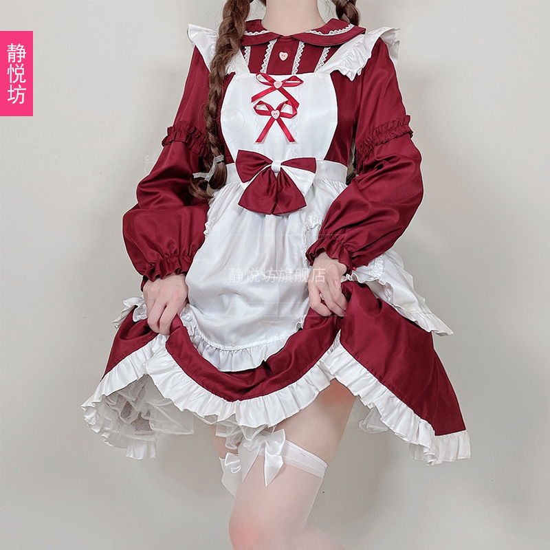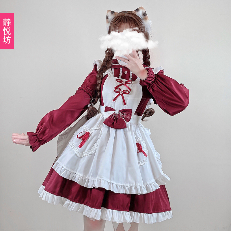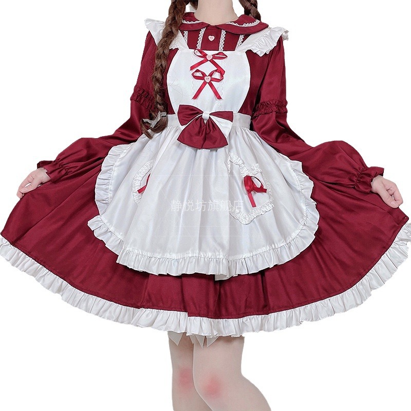 | nameOriginal | Red lolita Maid Dress Japanese Soft Cute Girl Long Sleeve Maid Uniform cosplay Lori Dress |