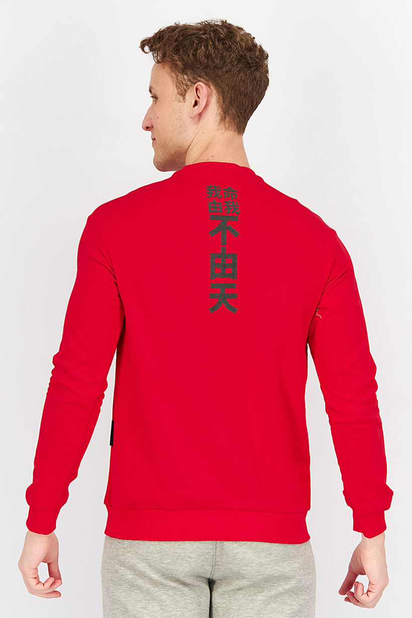 This product is suitable for machine washing and has a sportswear fit. The size shown is Asian and it features long sleeves with a medium thickness. The neckline is a crew neckline and it is designed for training. Please note that the product color may vary slightly due to photographic lighting sources or monitor settings. Made from 100% cotton, this product is perfect for sports occasions and features a graphic print. It is a pullover type of sportswear and comes in a red color family.