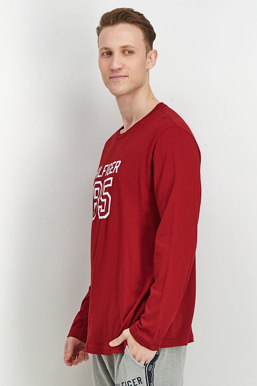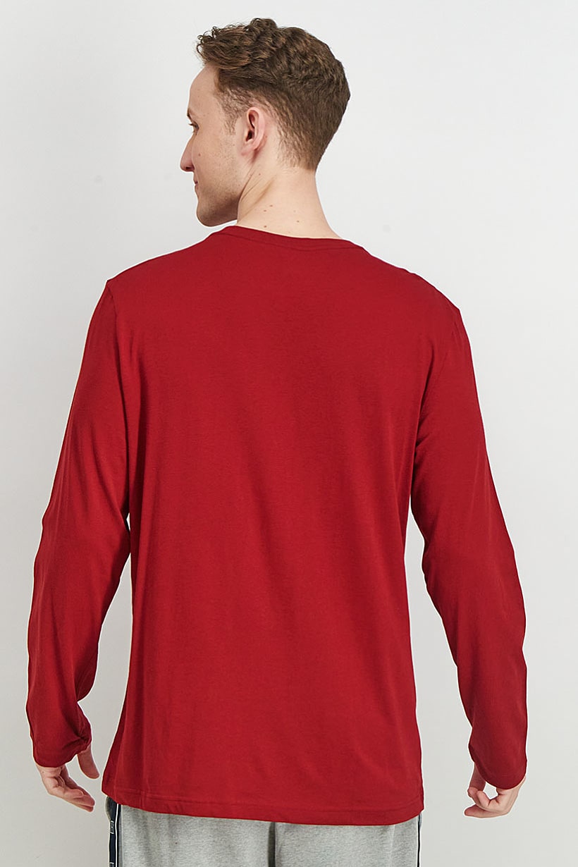 Men Crew Neck Brand Logo Long Sleeves Sleepwear, Red