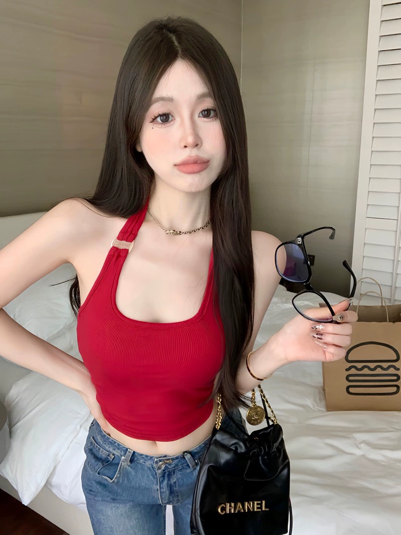 | nameOriginal | Red niche slim-fitting top with halter neck straps |