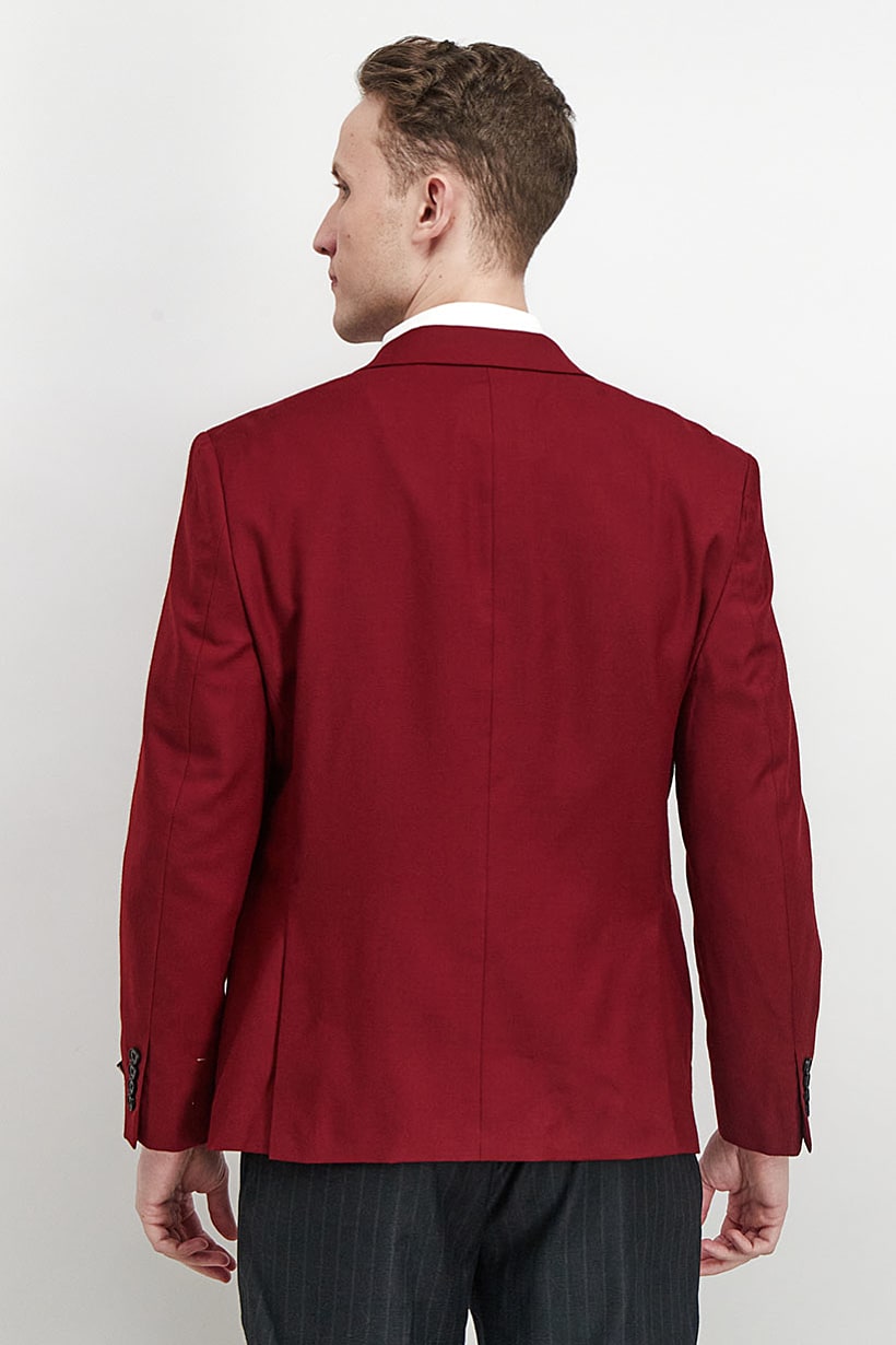 Red Notch Collar Slim Fit Blazer for Men with Long Sleeves.