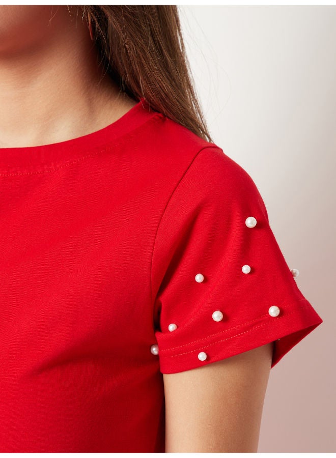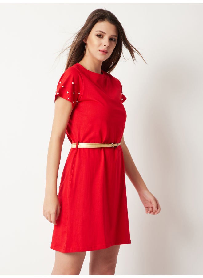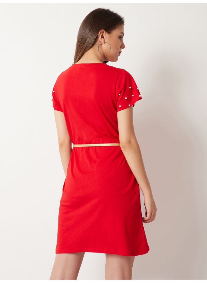 | nameOriginal | Street Wheel Pearl Sleeve T-Shirt Dress Red |