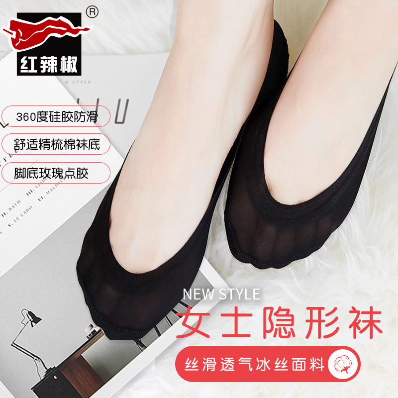 | nameOriginal | Red pepper Ice Silk boat Socks women's shallow mouth invisible silicone non-slip non-slip heel summer thin high heels low top socks |