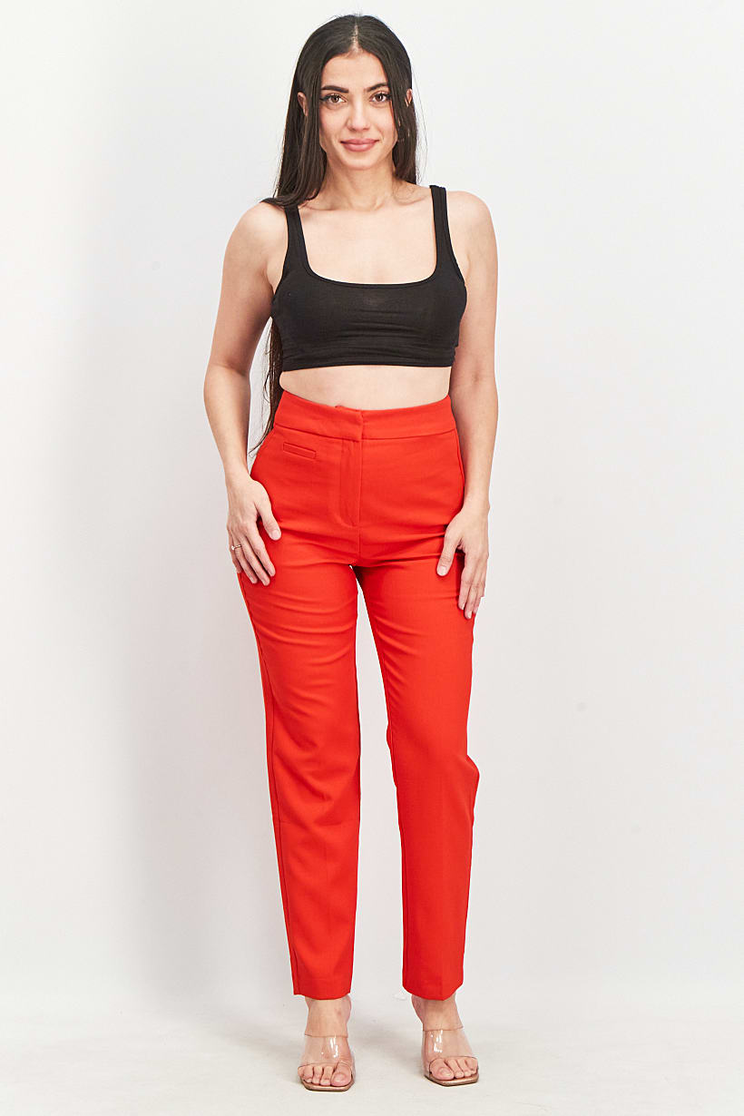Women Clothing, Pants, women regular fit plain no pocket pants red