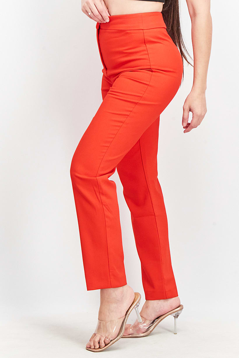 Care : Machine washable, Fit : Regular fit, Size shown : International, Types of Jeans Rise : Mid rise, Bottom Closure : Hook and bar, Button, Bottom Style/Pattern : No Pocket, Disclaimer : Product color may slightly vary due to photographic lighting sources or your monitor settings., Fabrics : 74% Polyester, 20% Viscose, 6% Elastane, Occasion : Casual, Color Family : Red,