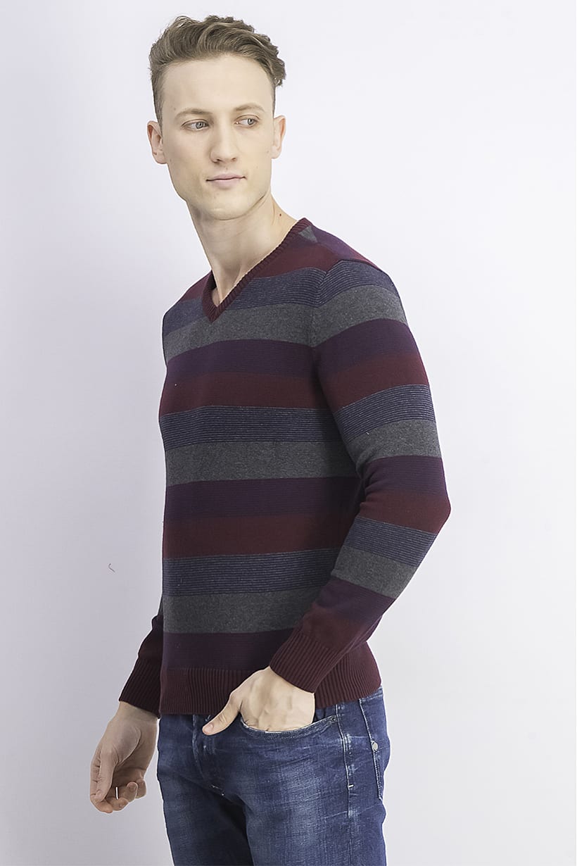 | sub_Categories | Men Clothing, Sweaters & Cardigans, men stripe v neck sweater red plum |