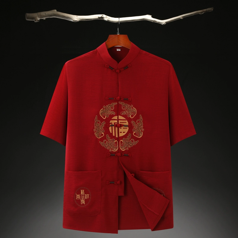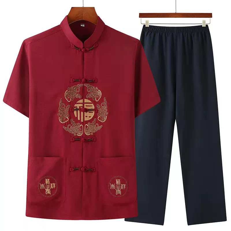 Red Plus Size Medium Sleeve Loose Top Tang Suit
