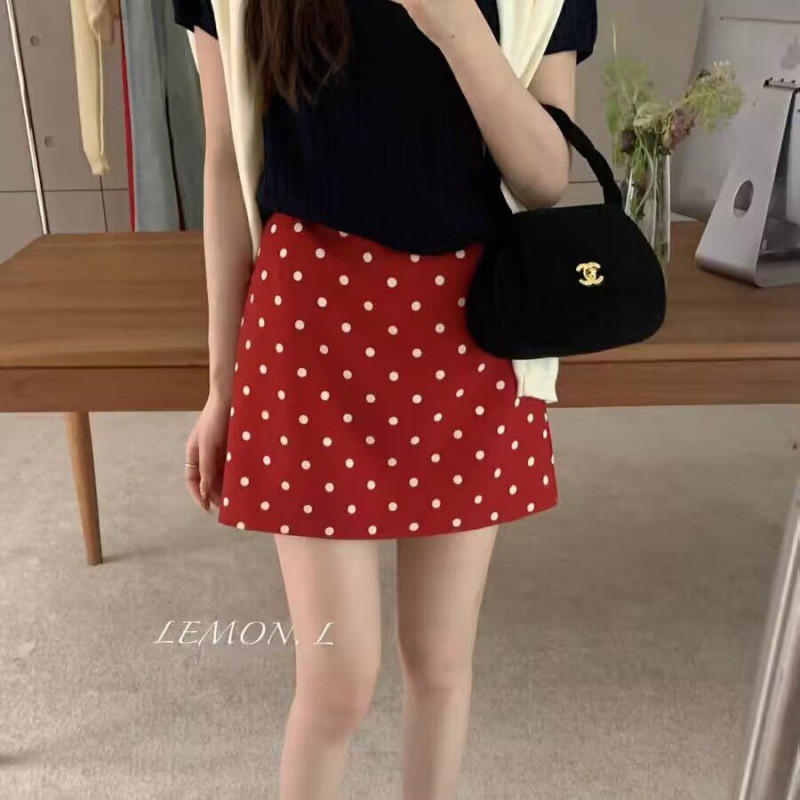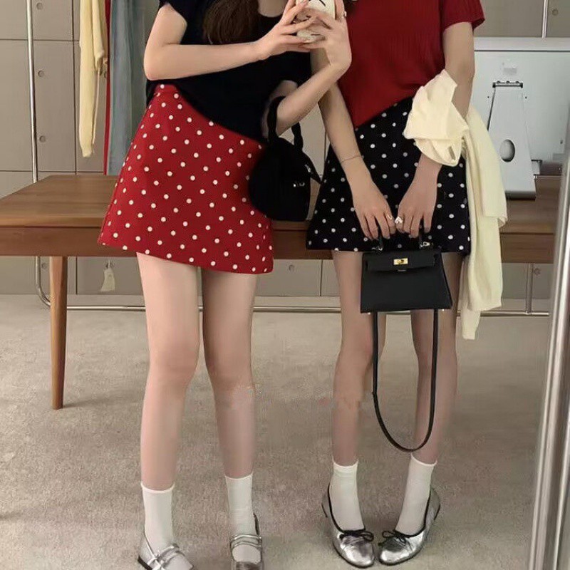 Red Polka Dot Skirt Women's Spring and Summer 2024 New Arrival High Waist All-Match Retro Slimming College Style A- Line Hip Skirt