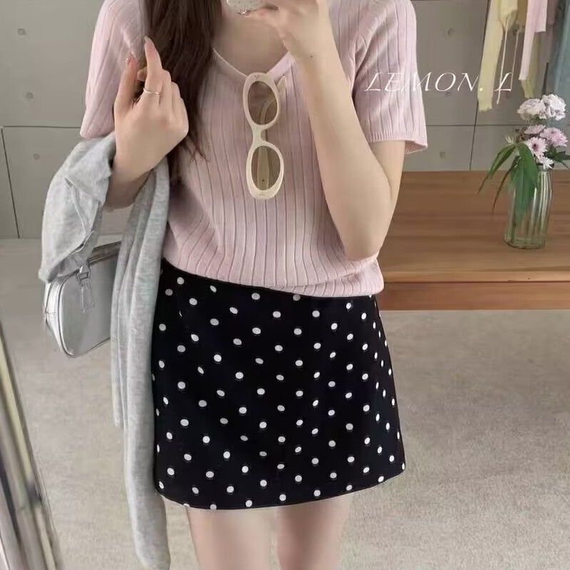 Red Polka Dot Skirt Women’s Spring and Summer 2024 New Arrival High Waist All-Match Retro Slimming College Style A- Line Hip Skirt