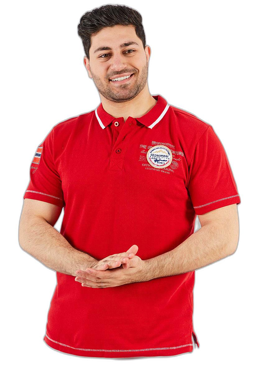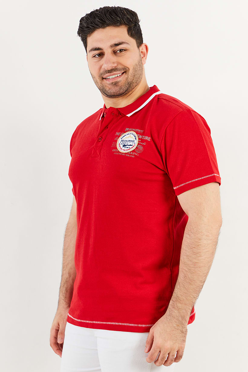 Red Polo Shirt with Embroidered Logo, Regular Fit, Short Sleeves for Men.