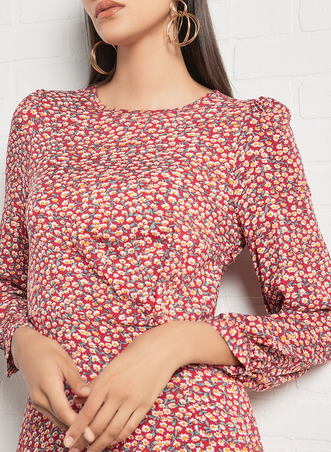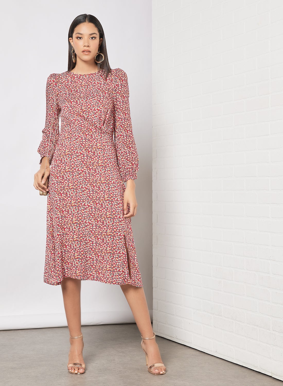 | nameOriginal | Casual Rayon Long Sleeve Midi Dress With Round Neck And Side Slit Printed Pattern Red |