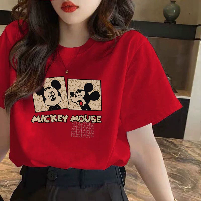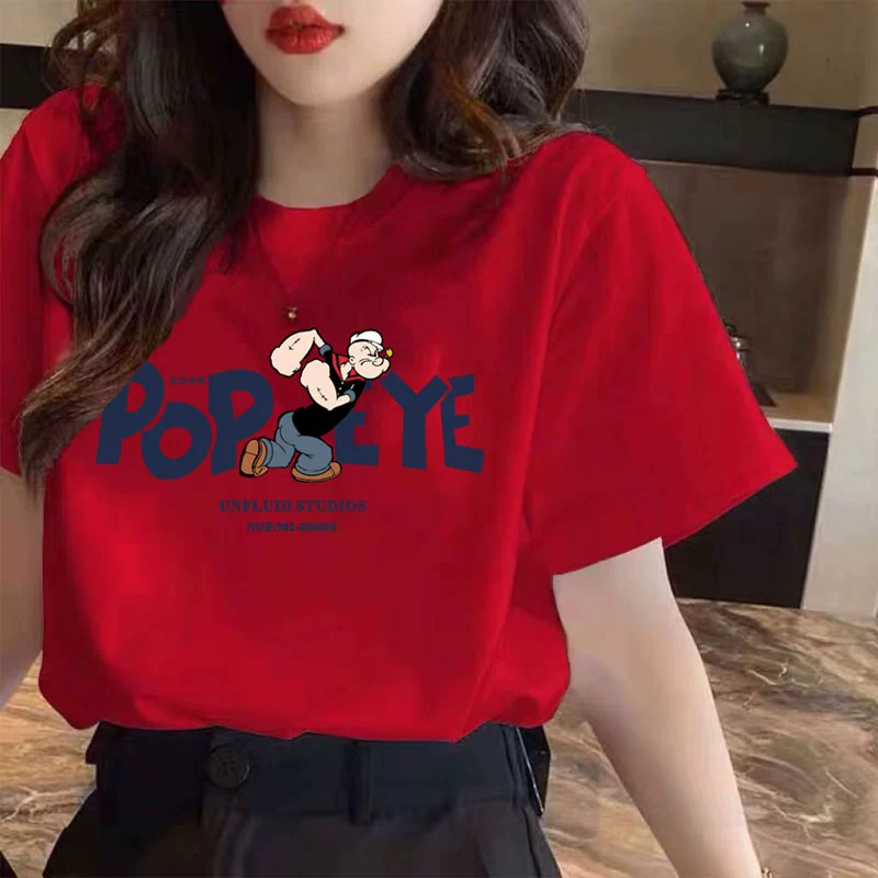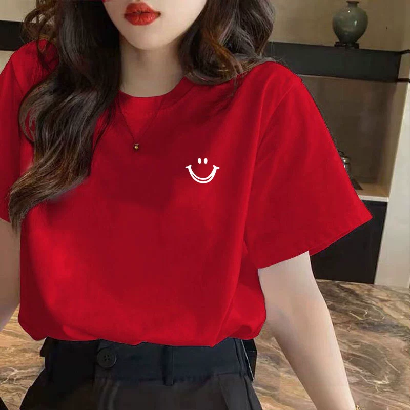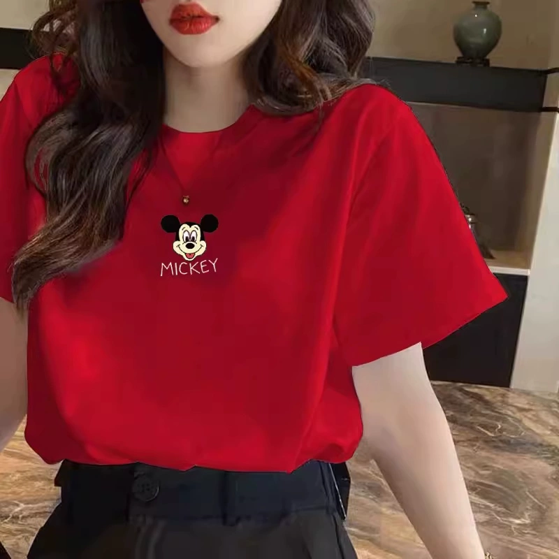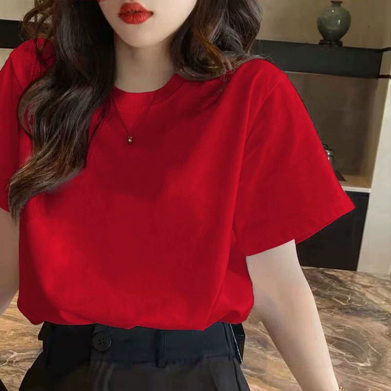 Red Positive Shoulder Thin Korean Version Loose INS Short Sleeve T -shirt