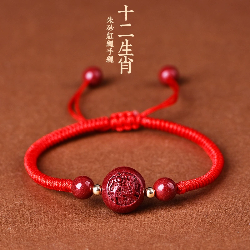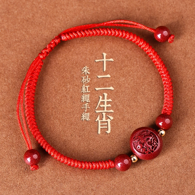 | nameOriginal | Red rope bracelet for women's birth year hand rope, hand-woven rope, dragon, monkey, pig, snake, peace talisman, transfer beads, cinnabar bracelet |
