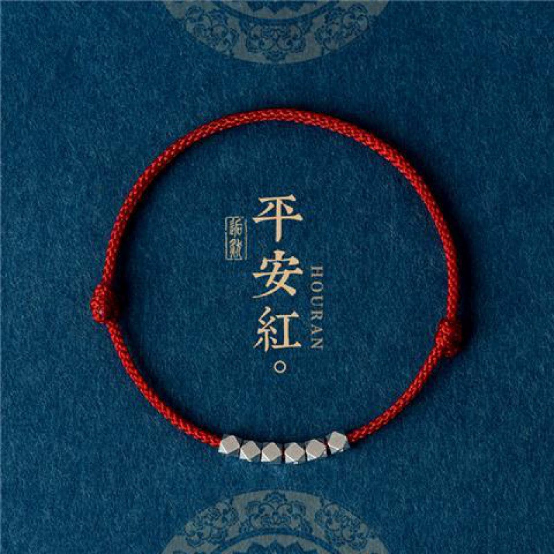 | nameOriginal | Red rope broken silver anklet for women simple transfer beads |
