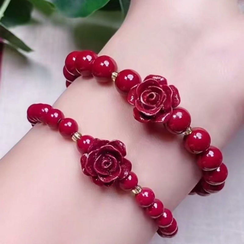 | nameOriginal | Red Rope Hand Rope Rose Real Cinnabar Bracelet Beads Round Beads Female Buddha Beads Handstring This Year of Life |