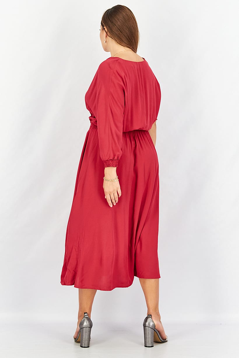 | descriptionOriginal | Care : Machine washable, Dress Style : Sheath, Fit : Regular fit, Size shown : US, Types of Hem : Straight hem, Types of Neckline & Collar : V-neckline, Types of Sleeve : Longsleeve, Disclaimer : Product color may slightly vary due to photographic lighting sources or your monitor settings., Fabrics : 100% Viscose, Occasion : Casual, Pattern & Print : Plain/Solid, Types of Closures : Pullover, Color Family : Red, |