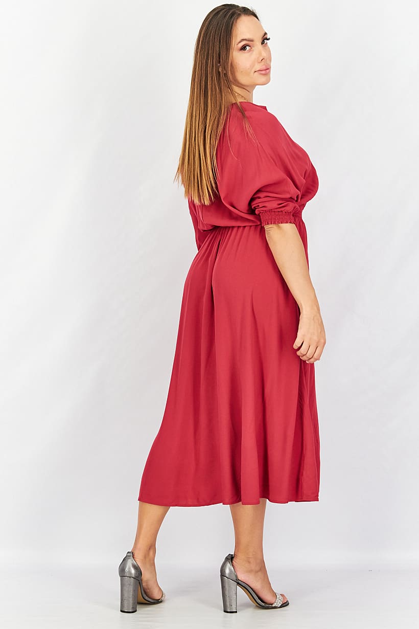 | nameOriginal | Women Plain V-Neck Sheath Dress, Red |