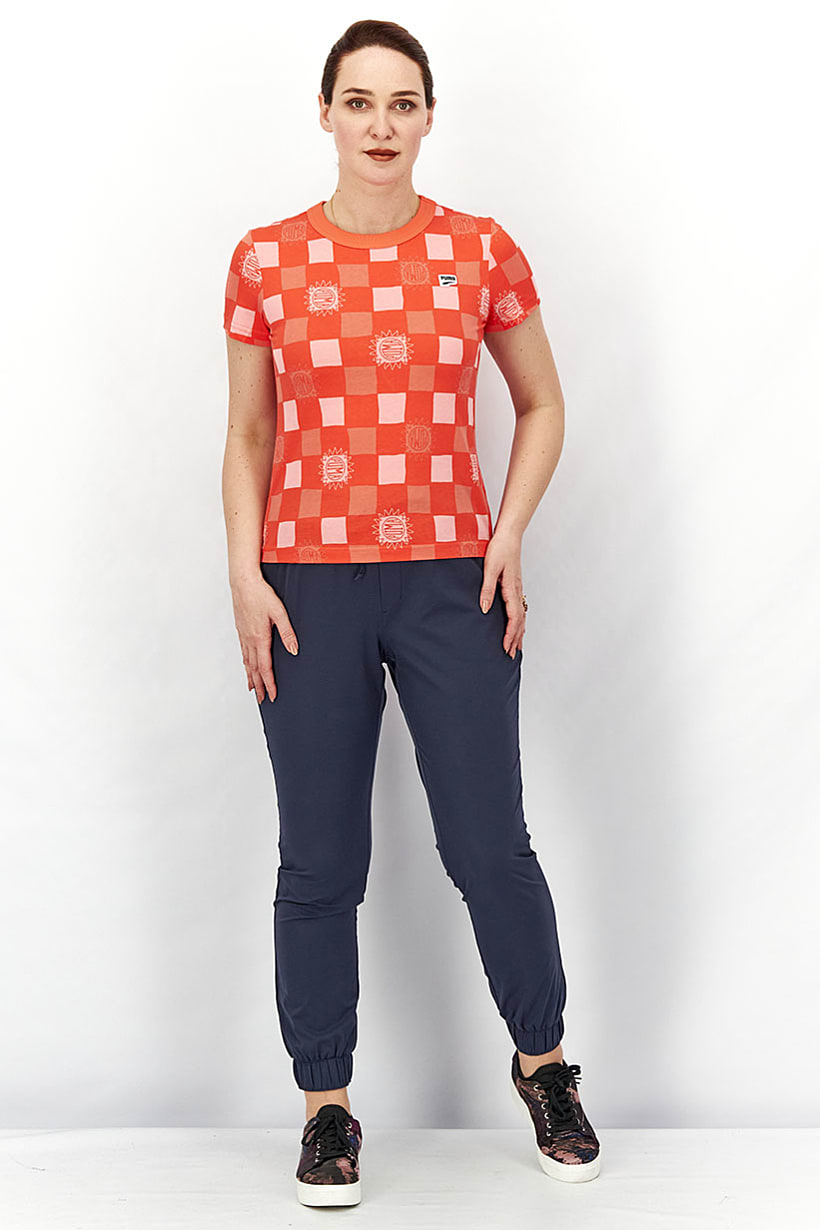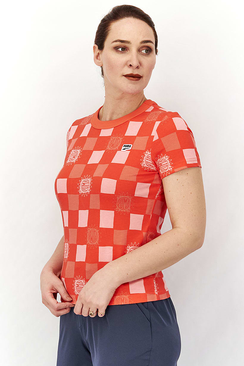 Red Short Sleeve Downtown T-shirt for Women’s Sportswear.