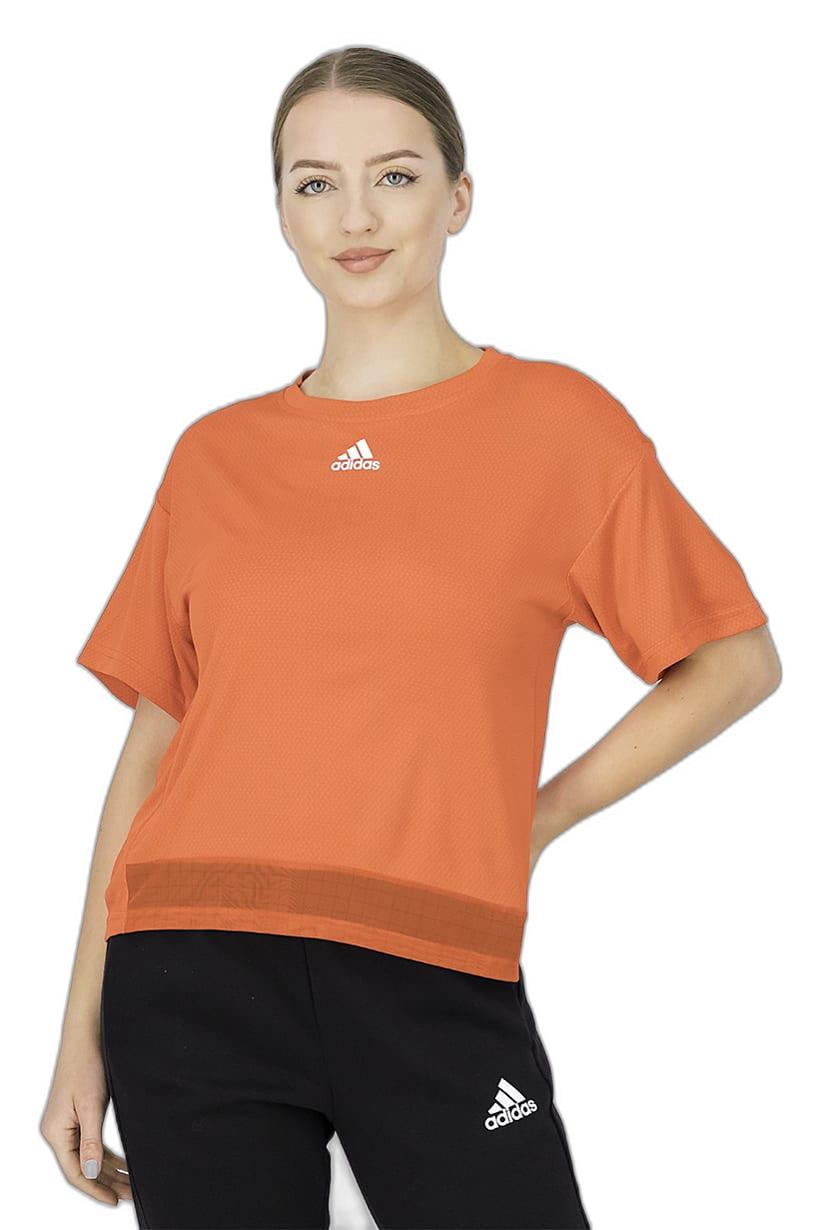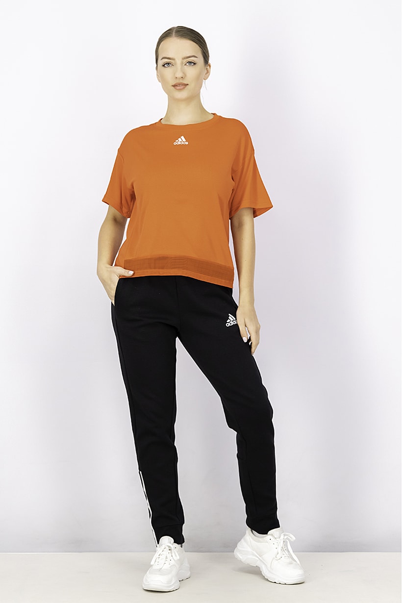 Care : Machine washable, Fit : Sportswear Fit, Ideal For : Women, Size shown : Asian, Sleeve Length : Short Sleeve, Thickness : Light, Type of Sport : Training, Types of Hem : Straight hem, Types of Neckline & Collar : Crew neckline, Disclaimer : Product color may slightly vary due to photographic lighting sources or your monitor settings., Fabrics : 100% Polyester, Pattern & Print : Brand Logo, Sportswear Type : Tops, Types of Closures : Pullover, Color Family : Red,