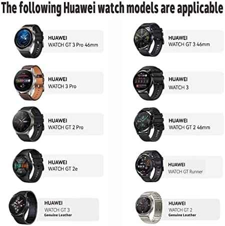This watch band is compatible with various models, including Huawei Watch Buds, Huawei Watch 3, Huawei Watch 3 Pro, Huawei GT 3 46mm, Huawei GT 3 Pro 46mm, GT Runner, Huawei Watch GT 2 Pro, Huawei Watch GT 2e, Huawei Watch GT 3 46mm, Huawei Watch GT 2 46mm, Huawei Watch GT 46mm, Samsung Galaxy Watch 3 45mm, Samsung Galaxy Watch 46mm, Samsung Gear S3 Frontier/Samsung Gear S3 Classic, Samsung Gear 2 R380, Samsung Gear 2 Neo R381, and Samsung Gear Live R382.