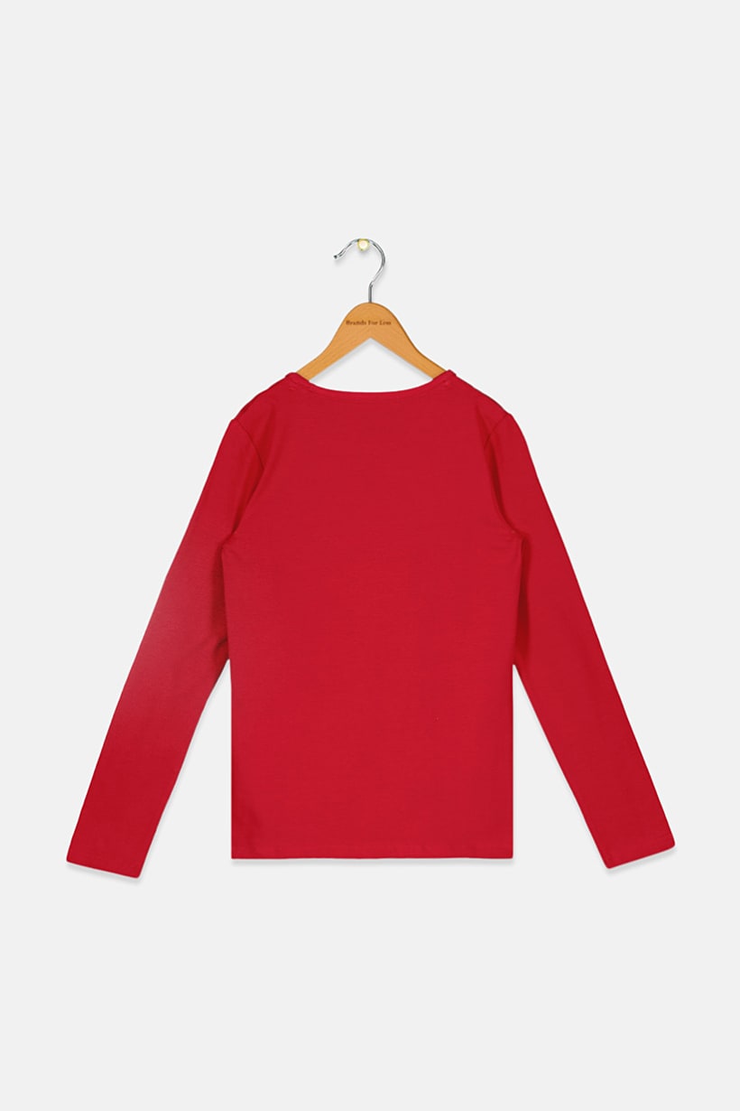 This product is suitable for girls and can be easily washed in a machine. It features a round neckline and long sleeves with a straight hem. The fabric is made of 95% cotton and 5% elastane, making it comfortable for casual occasions. The brand logo is printed on the shirt, and it has a pullover closure. Please note that the product color may vary slightly due to lighting or monitor settings. The color of the shirt is red.