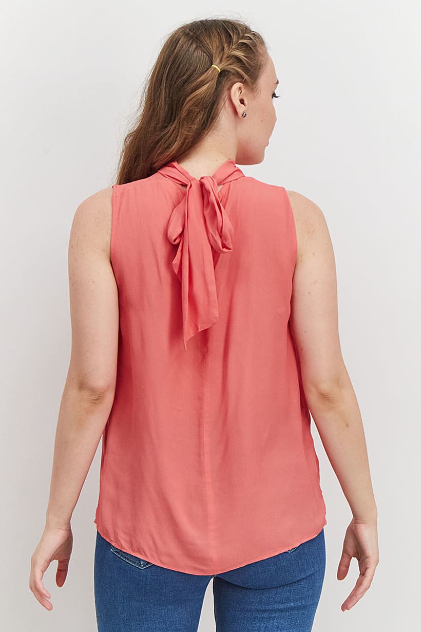 Care : Machine washable, Fit : Regular fit, Size shown : US, Top Style : Blouse, Types of Hem : Step hem, Types of Neckline & Collar : Crew neckline, Types of Sleeve : Sleeveless, Fabrics : 100% Viscose, Occasion : Casual, Pattern & Print : Plain/Solid, Types of Closures : Button, Color Family : Red,