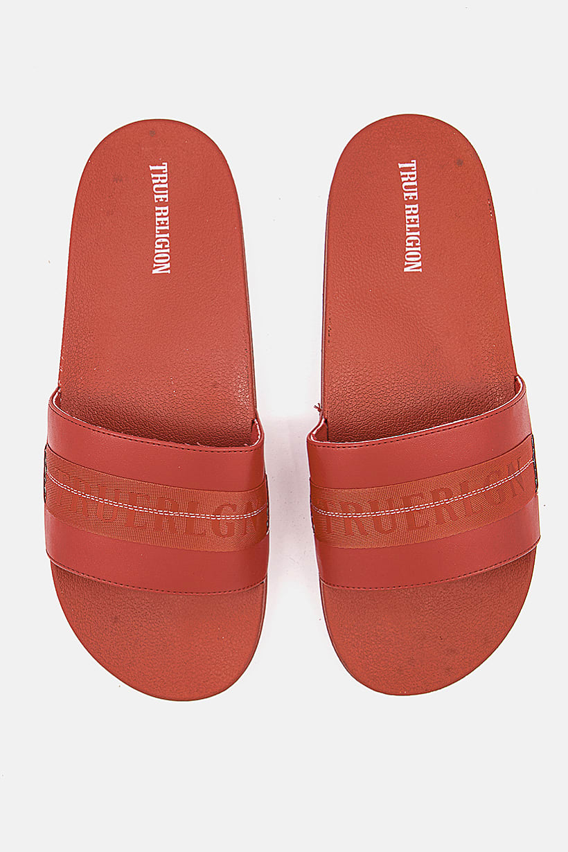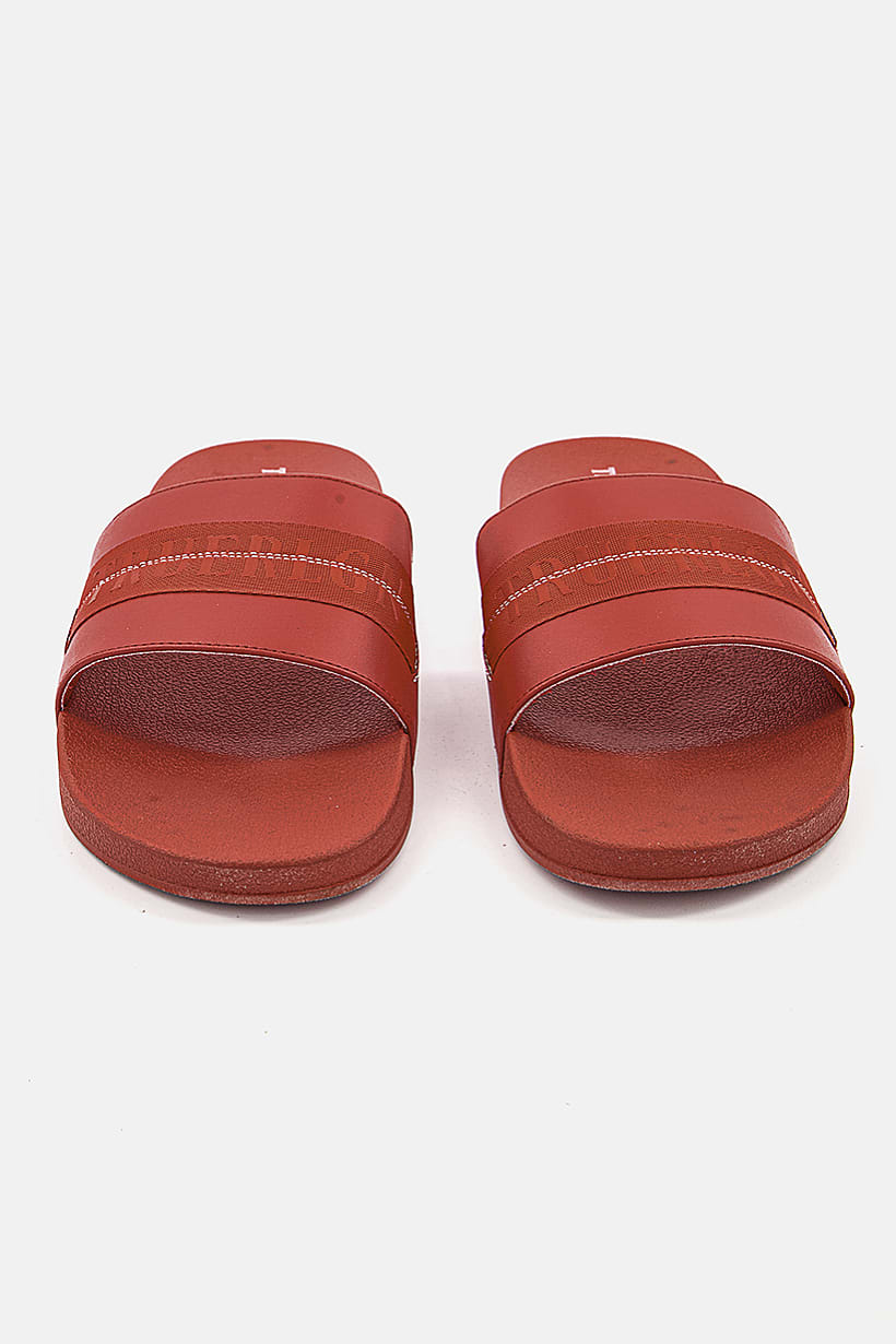 | sub_Categories | Shoes, Slides & Slippers, men arc logo slip on slippers red |