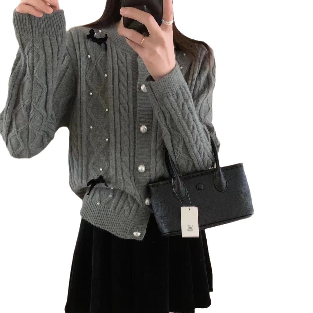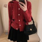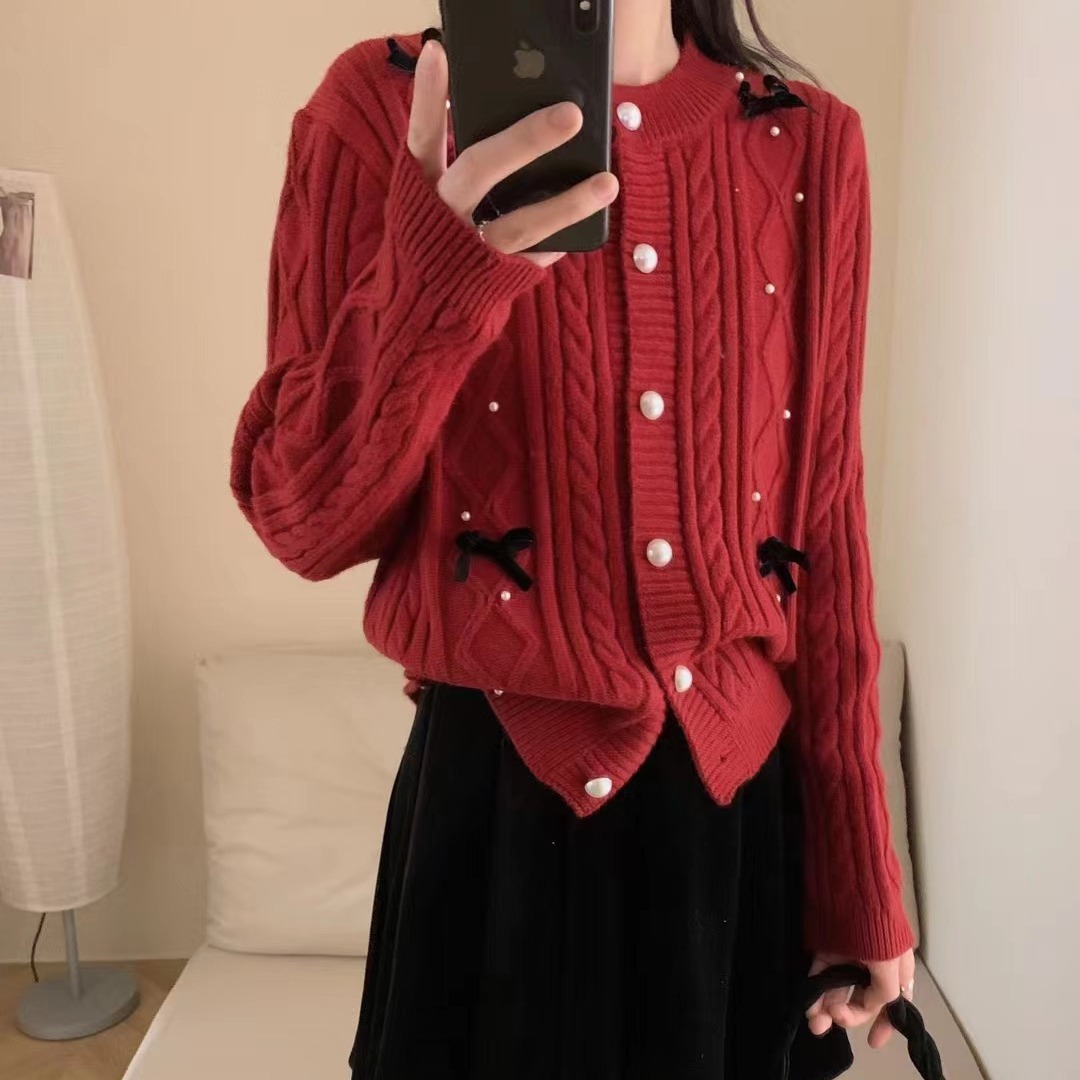 | nameOriginal | Red soft glutinous beaded sweater for women 2024 spring and autumn sweet knitted cardigan high-grade twist short all-match coat |