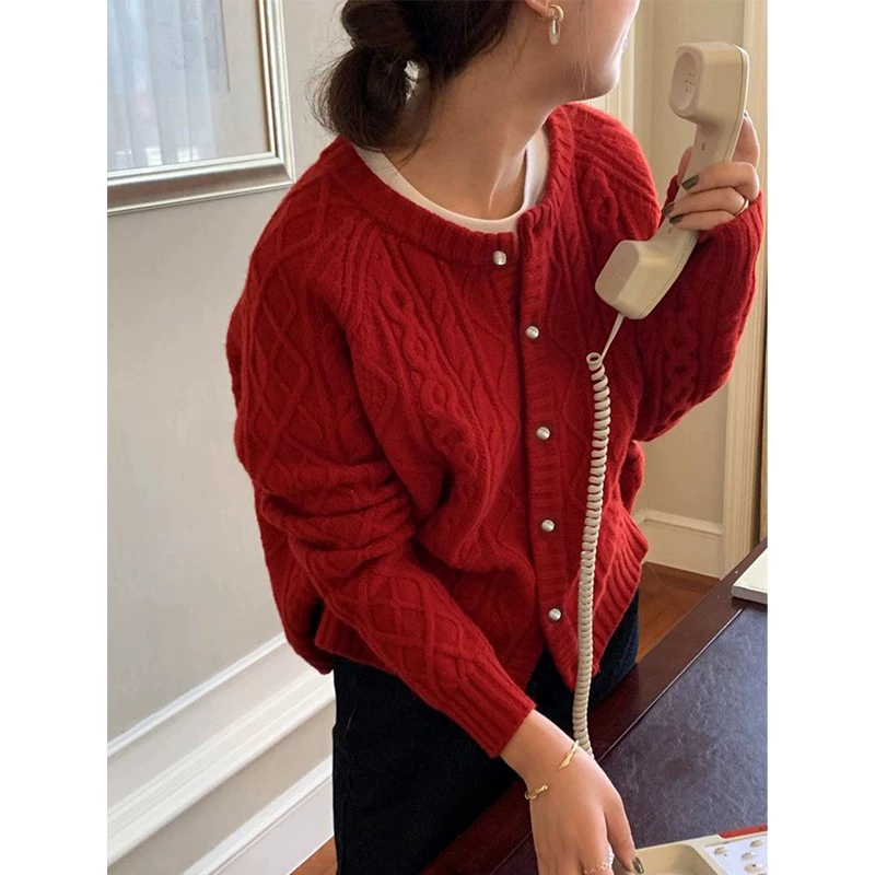 | nameOriginal | Red soft waxy twist sweater coat knitted cardigan |